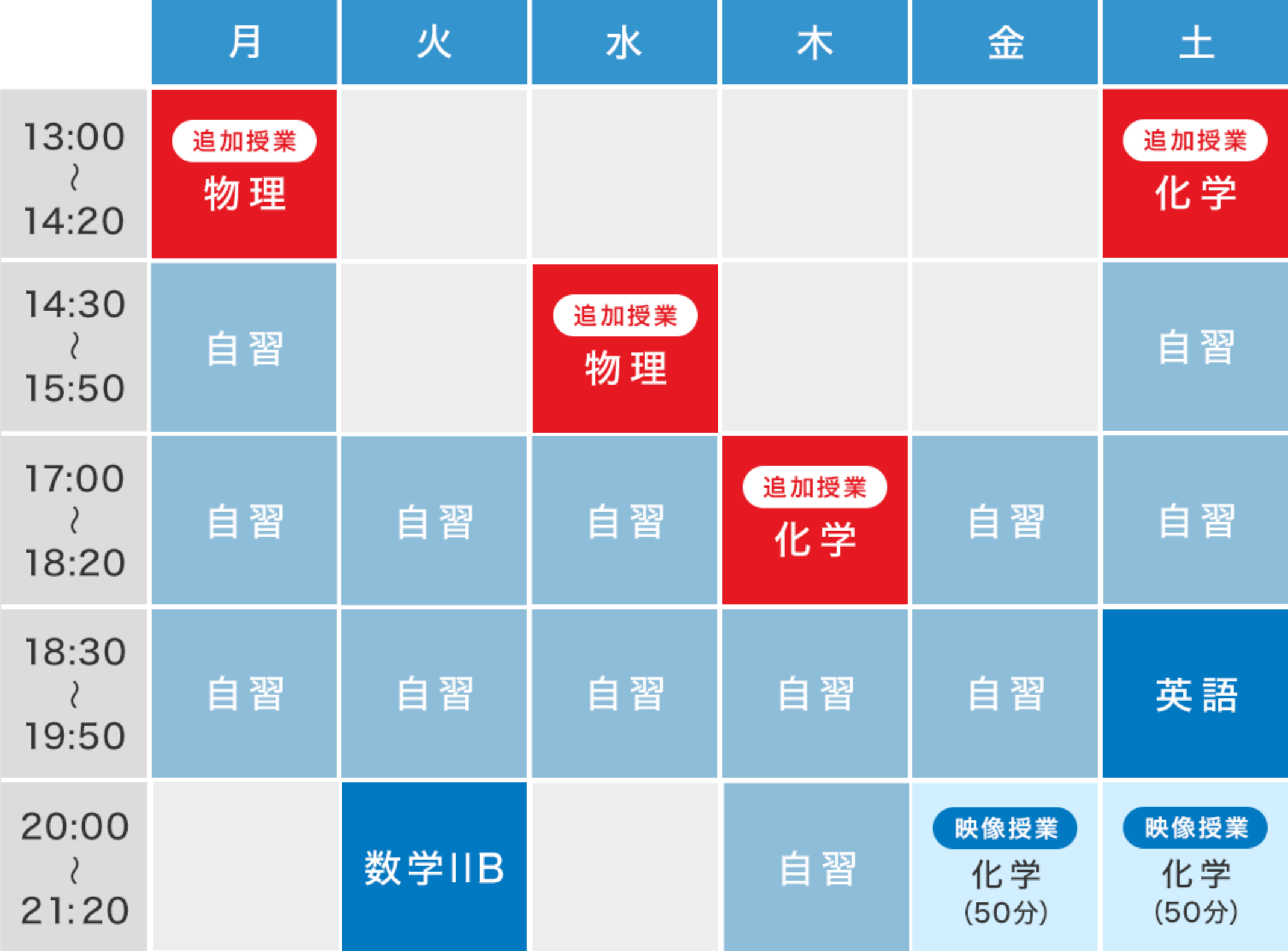 POINT 通常授業以外にも、追加受講をすることができるので、定期テストや受験本番に向けて、通常受講科目以外の対策も行えます。