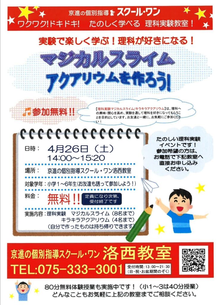小学生の皆様に勉強を楽しんでもらえるようなイベントをスクール・ワン洛西教室では開催いたします。