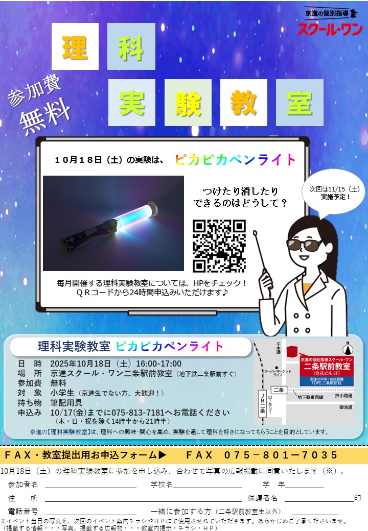 🌈理科実験教室「ピカピカペンライト」開催決定 |二条駅周辺|個別指導塾|小学生|✨💫