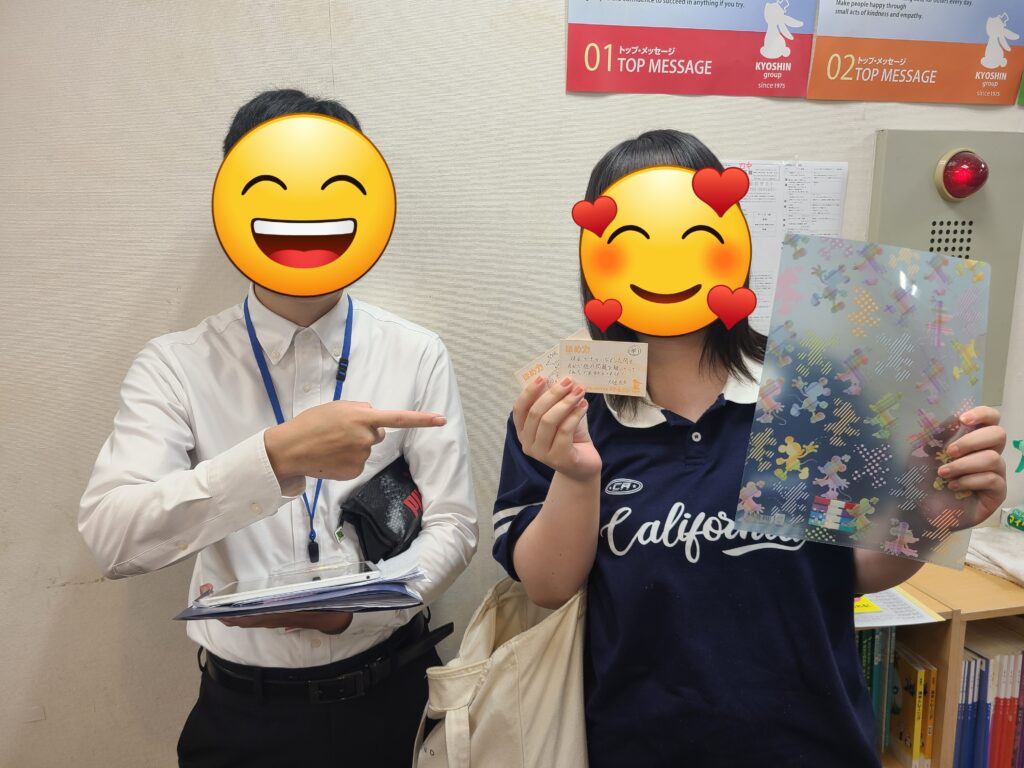 夏期講習期間中に番号が振られたほめカードを先生からもらい、9月に当選番号を発表しました!