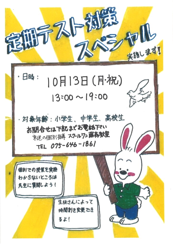 10/13(月・祝)「定期テスト対策スペシャル」