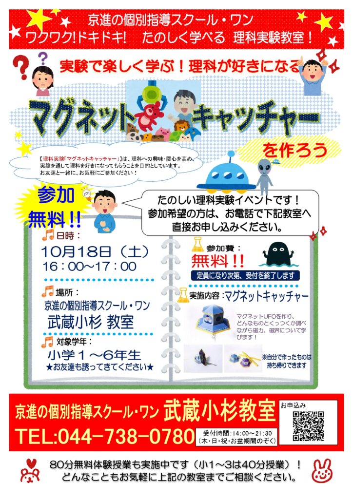 【小学生対象】10/18(土)理科実験開催のお知らせ