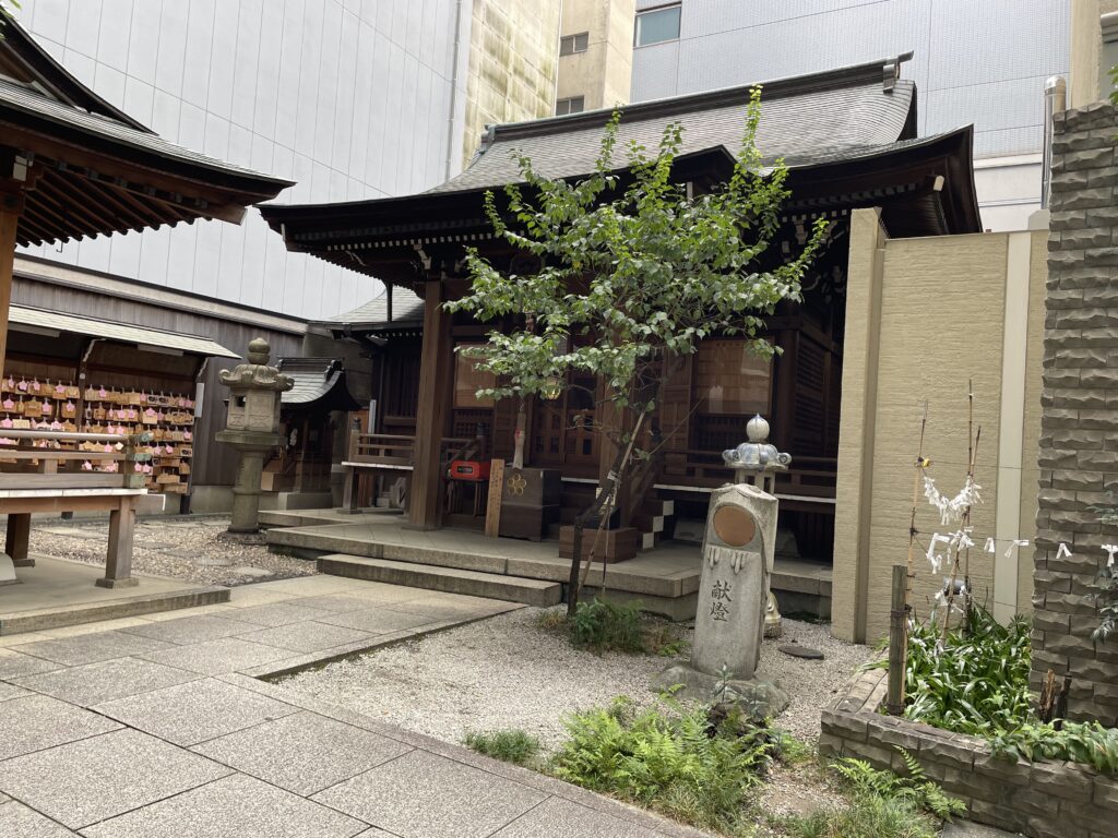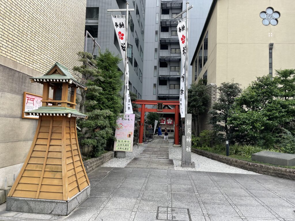 ちょうどお昼頃の時間帯ということもあり、多くのビジネスマンが行きかう中、横も後ろも高層のオフィスビルに挟まれて、ひっそりと「桜天神社」はありました。