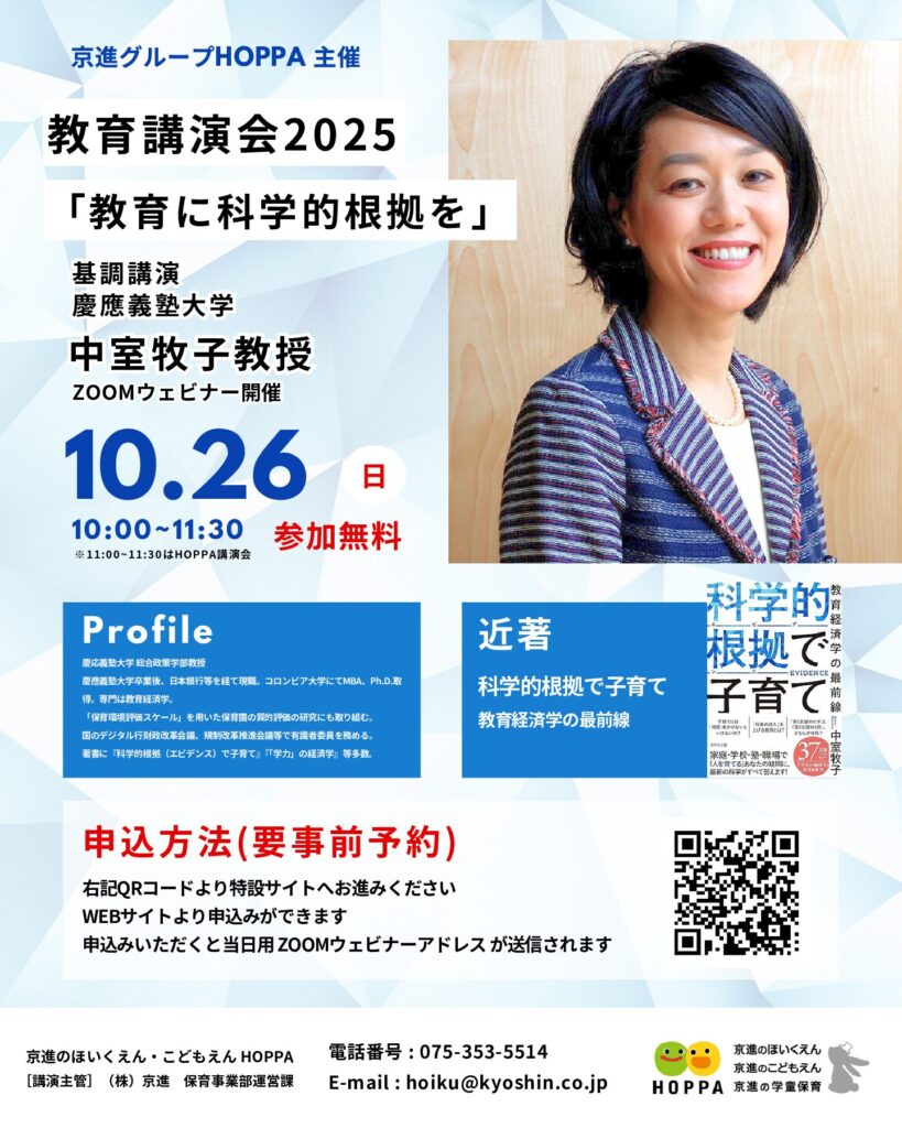 また、第2部では、京進グループの保育事業部「HOPPA(ほいくえん・こどもえん)」の教育内容について、教育統括担当よりご紹介します。