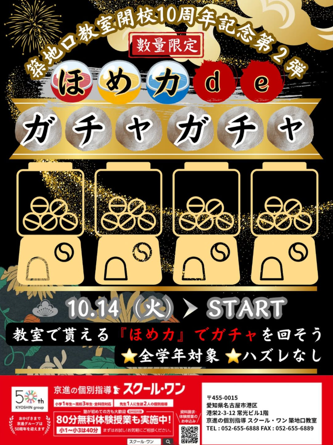 【開校10周年】キャンペーン第2弾 ほめカでガチャガチャ