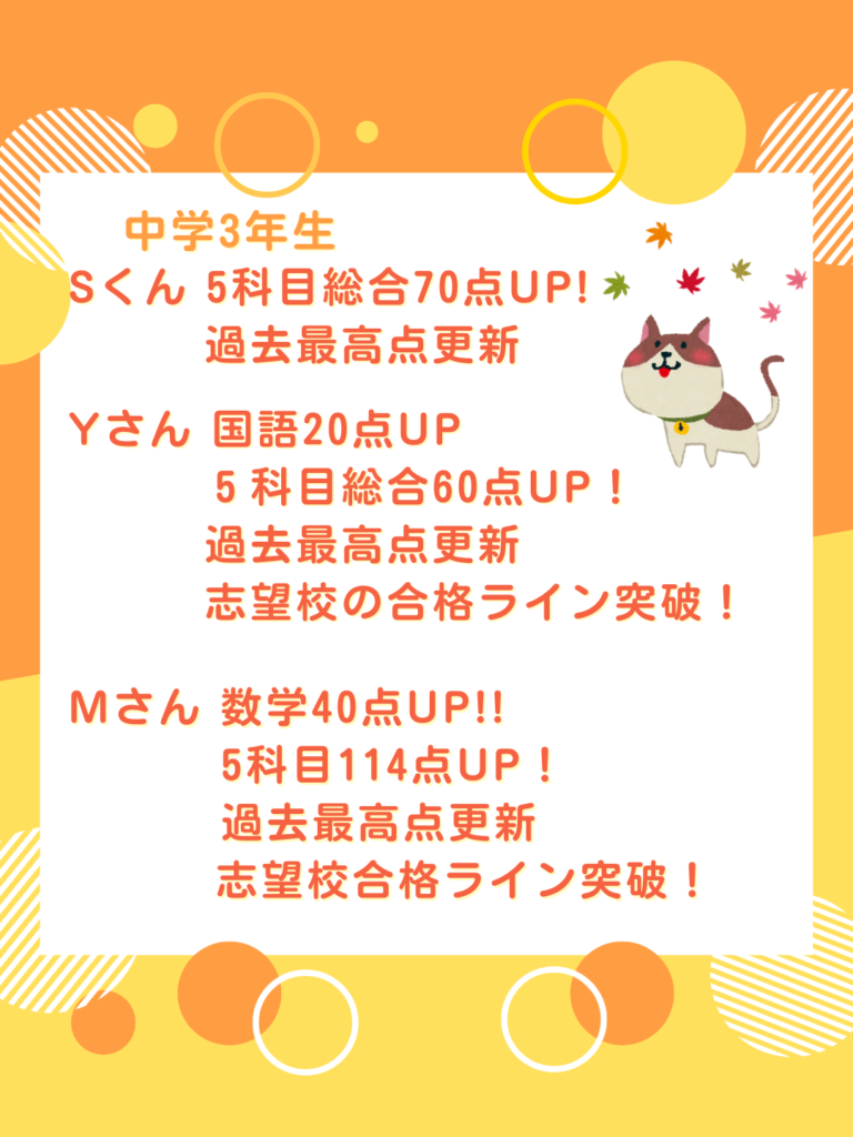【得点UP続出!】中学生の9月の定期テスト結果!