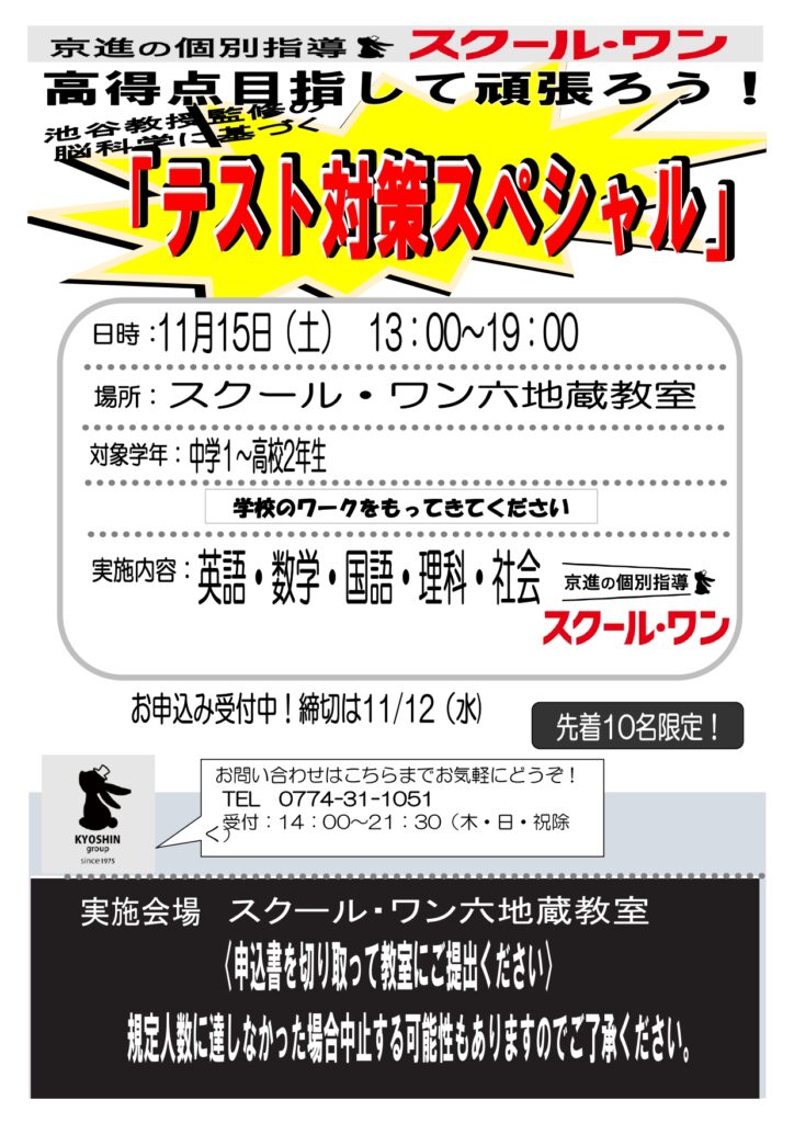 そんな方の為にスクールワンではテスト対策スペシャルというイベントを用意させていただいております。