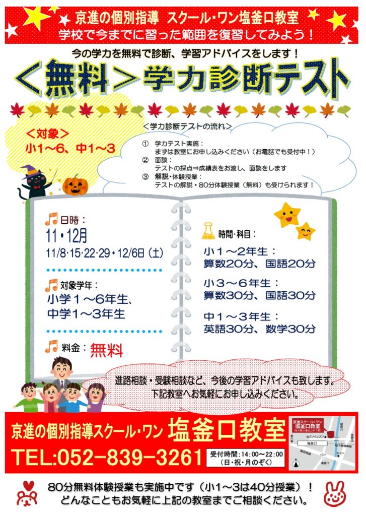 🌕秋から冬の無料学力診断テスト受付中🌕