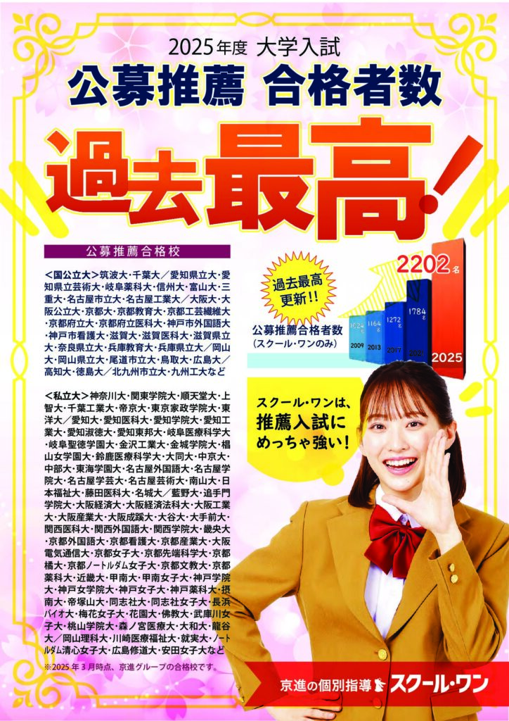 魅力たっぷりの公募推薦ですが、実は我々京進の個別指導スクール・ワンは