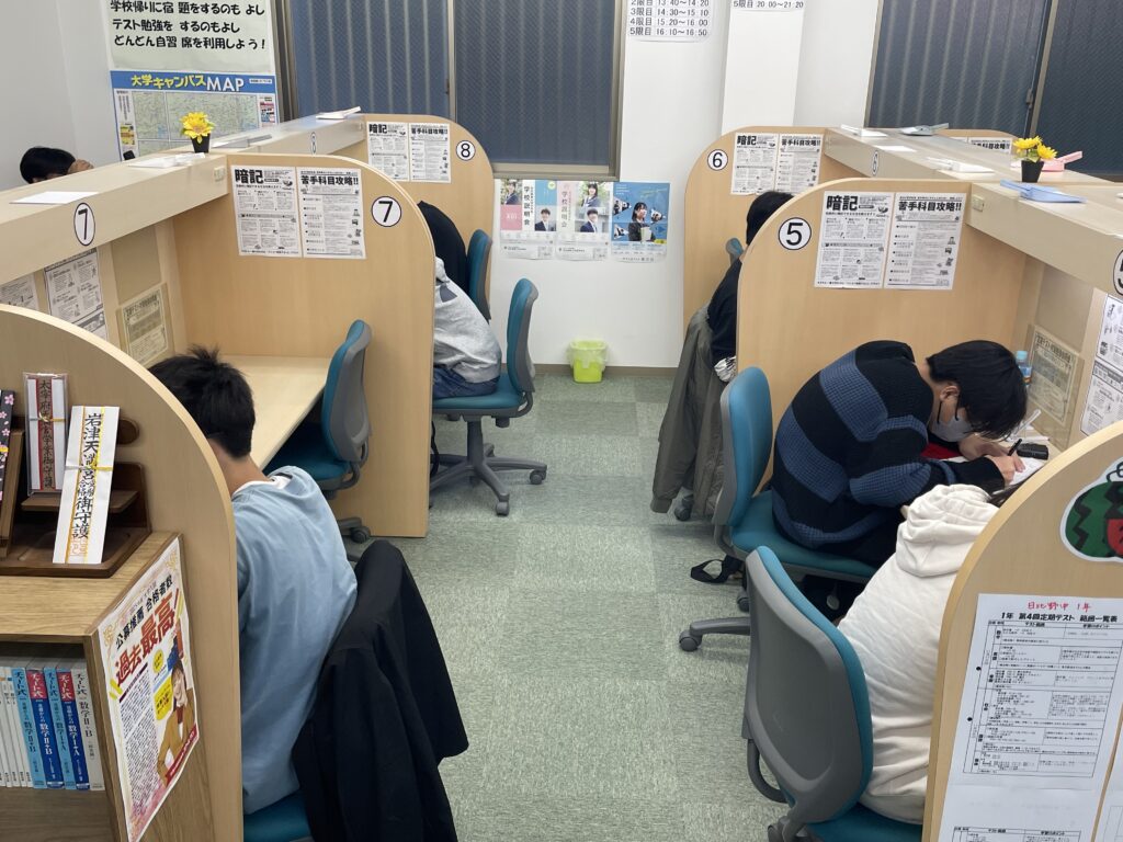 2日間でのべ37名の生徒が「テスト対策勉強会」に参加し、各自もくもくとテスト勉強に打ち込みました。