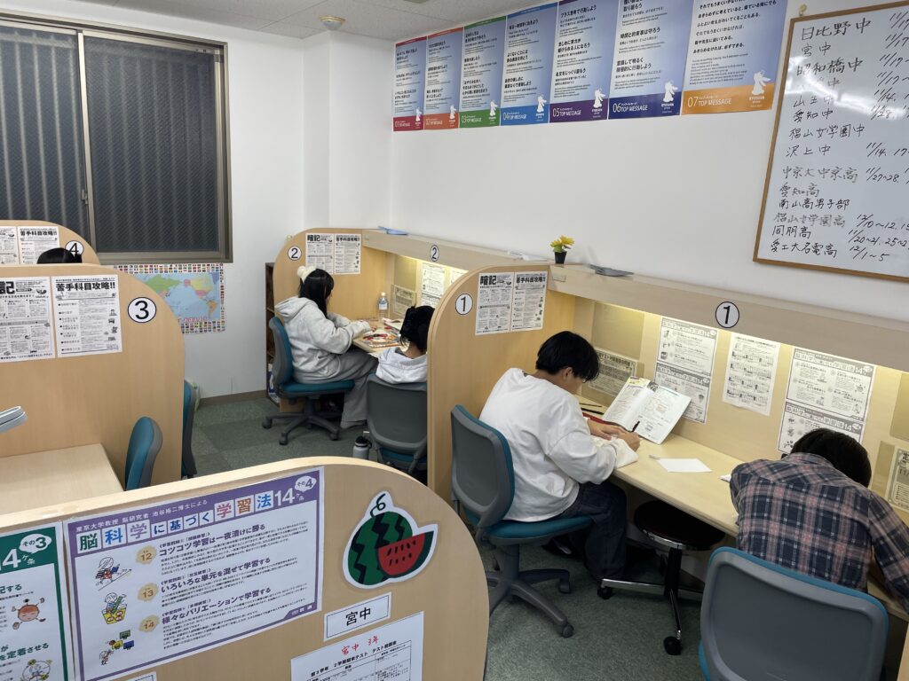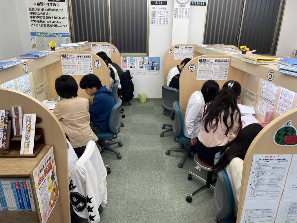 スクール・ワン日比野教室の生徒は、テスト2週間前くらいから自習に来る生徒が増え始め、10日前くらいに一気に増えます。