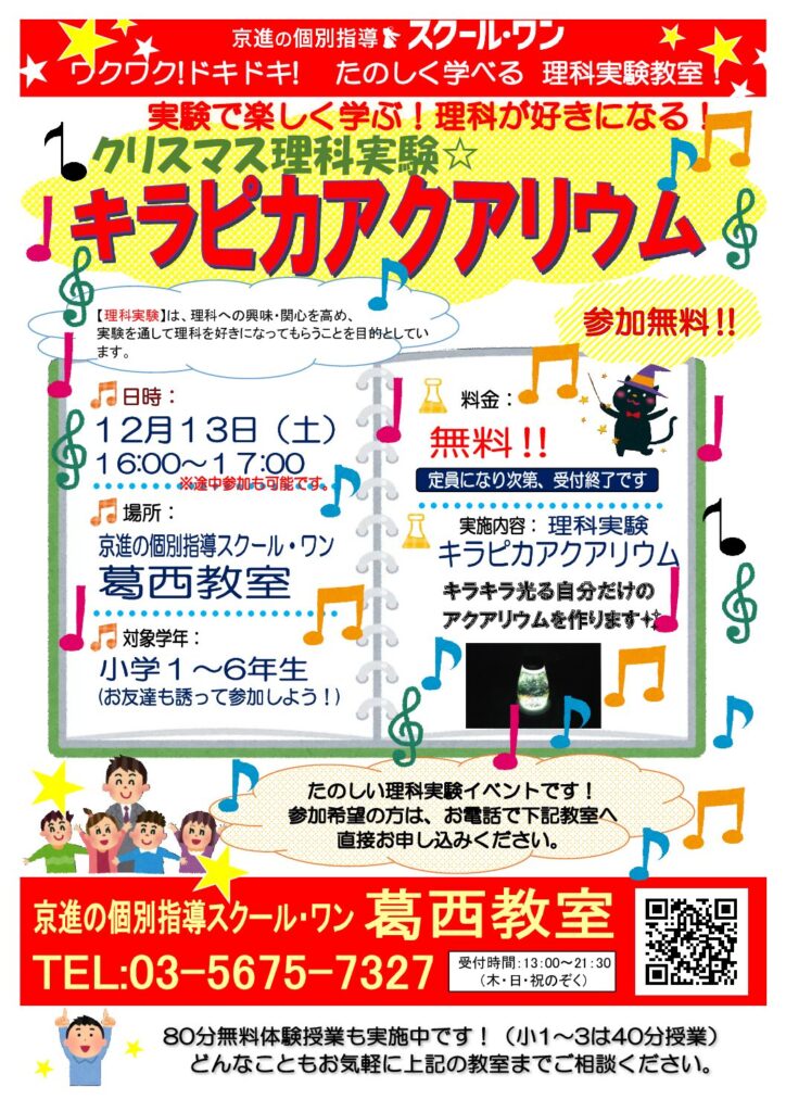 【クリスマス理科実験「キラピカアクアリウム」開催!】12/13(土)16:00~17:00