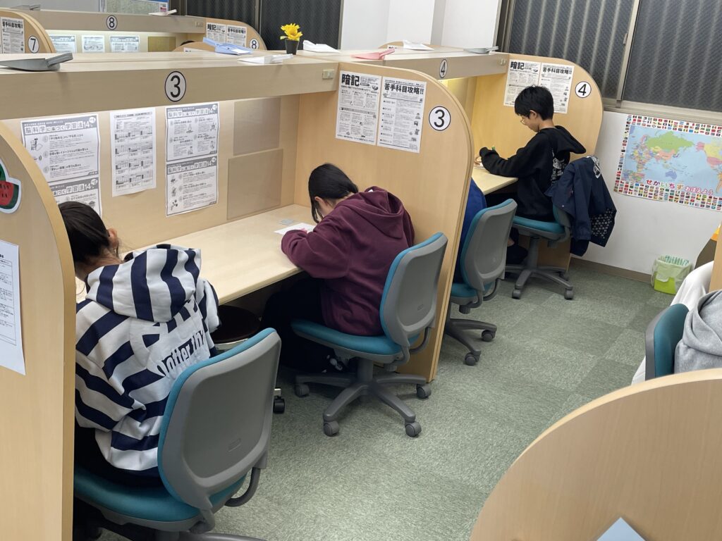 どの生徒もある程度志望校が決まりつつあり、高校受験に対する意識が高まってきたようで、休憩時間にも参考書や問題集を広げる生徒が増え、尚一層、模試を受ける表情も真剣になってきたように思います。
