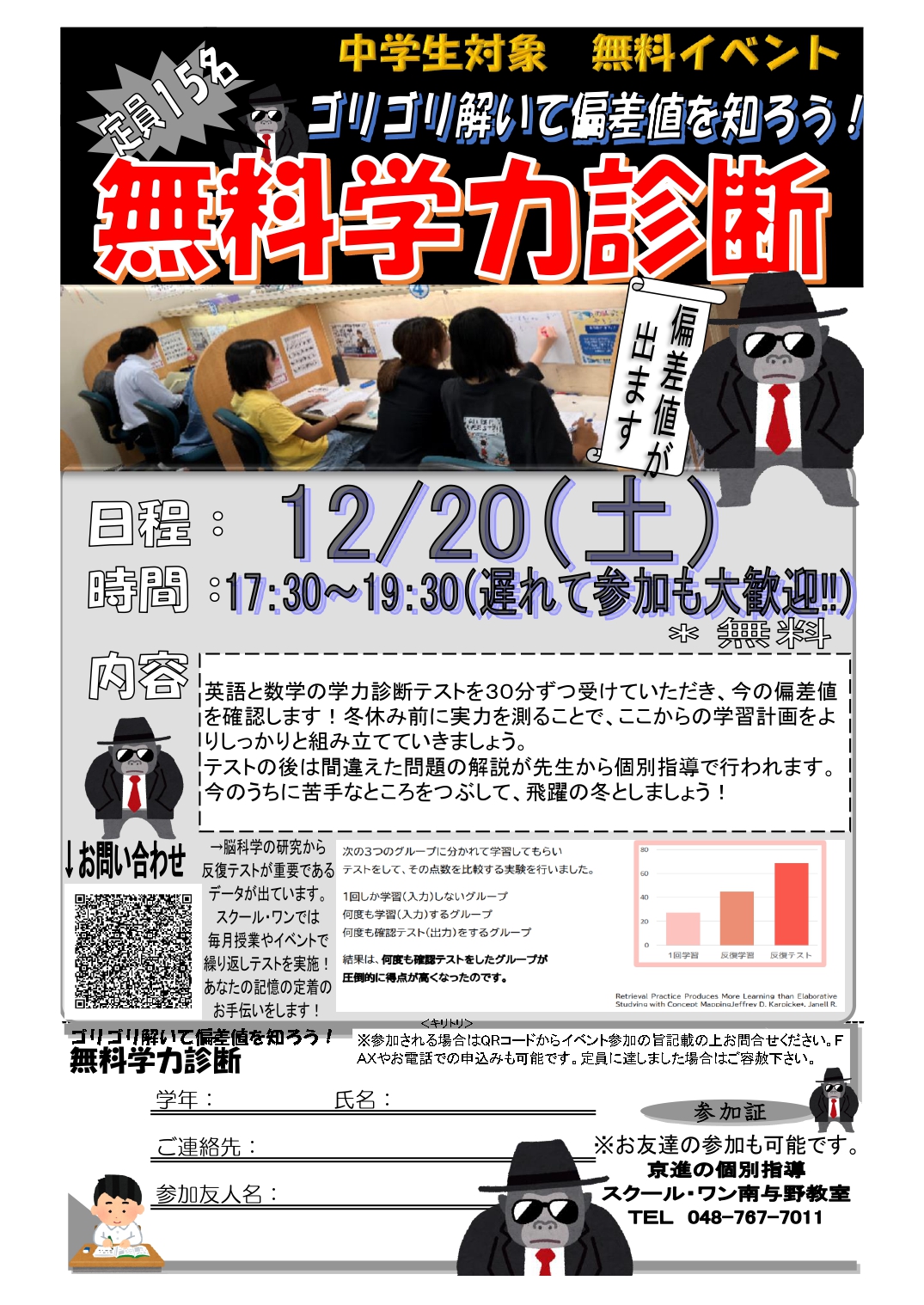 ゴリゴリ学力診断【12/20(土)17時30分~19時30分】【中学生対象】【参加費無料】【新規開校】