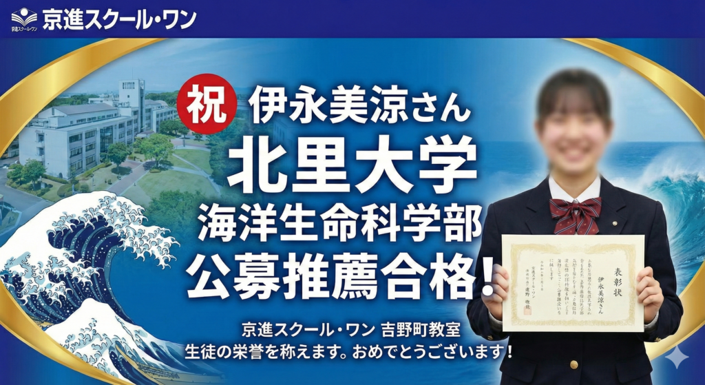 京進スクール・ワン吉野町教室としても、日々の頑張りをそばで見守ってきたからこそ、この合格は教室全体の喜びでもあります。