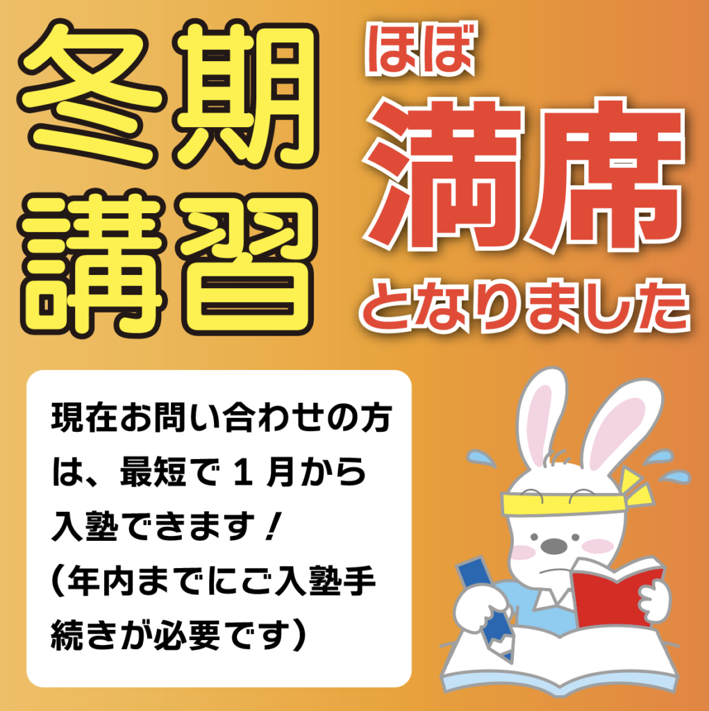 冬期講習ほぼ満席&1月新規生募集のお知らせ