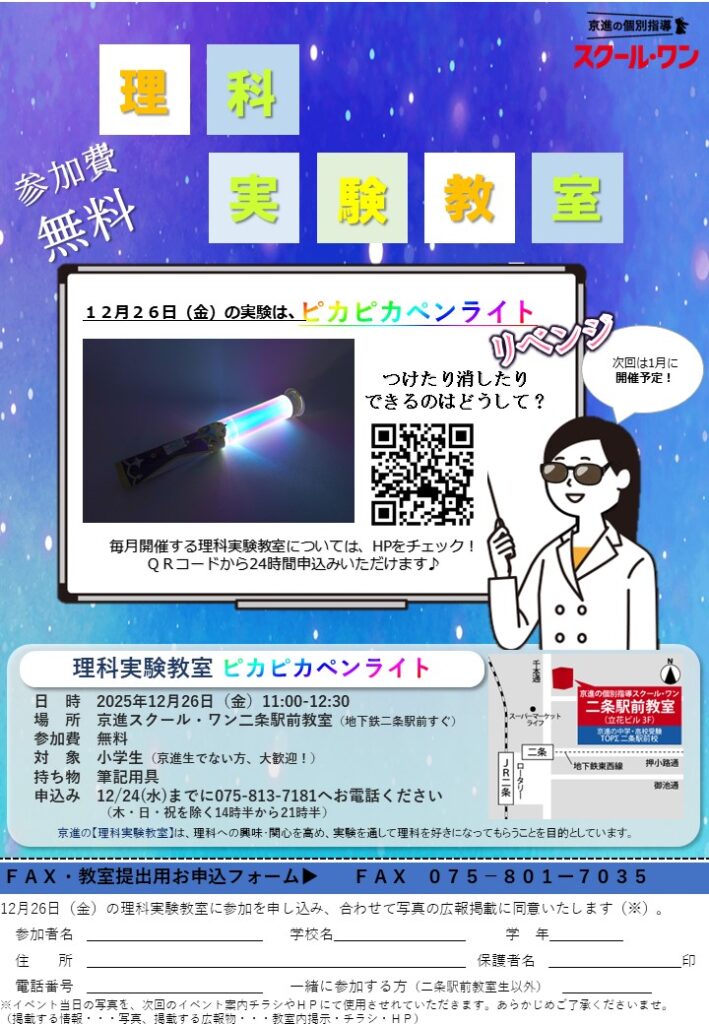 🪄理科実験教室「ピカピカペンライト」開催決定 |二条駅周辺|個別指導塾|小学生|🪄