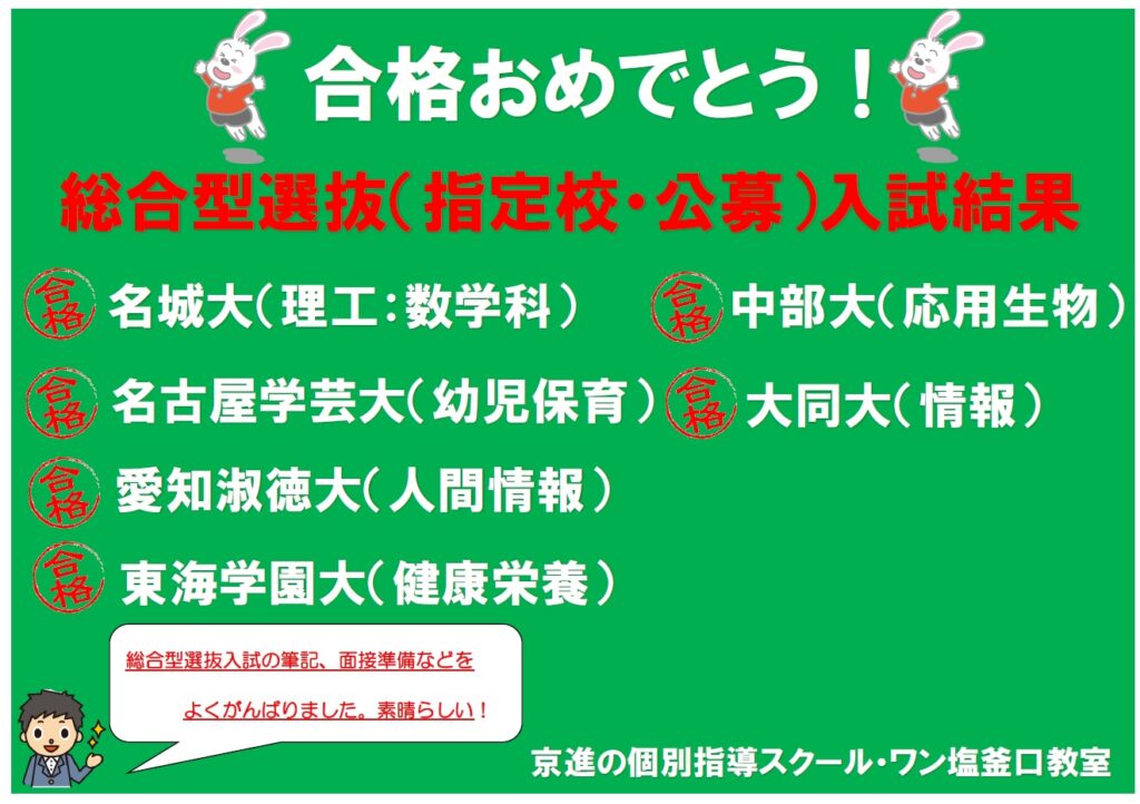 総合型選抜(指定校・公募推薦)入試の結果が出始めています!