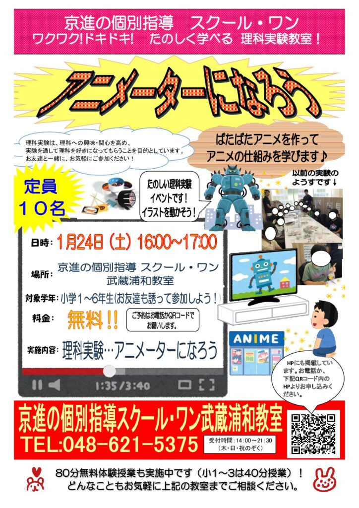 ★【小学生対象】1/24(土)理科実験「アニメーターになろう」開催★