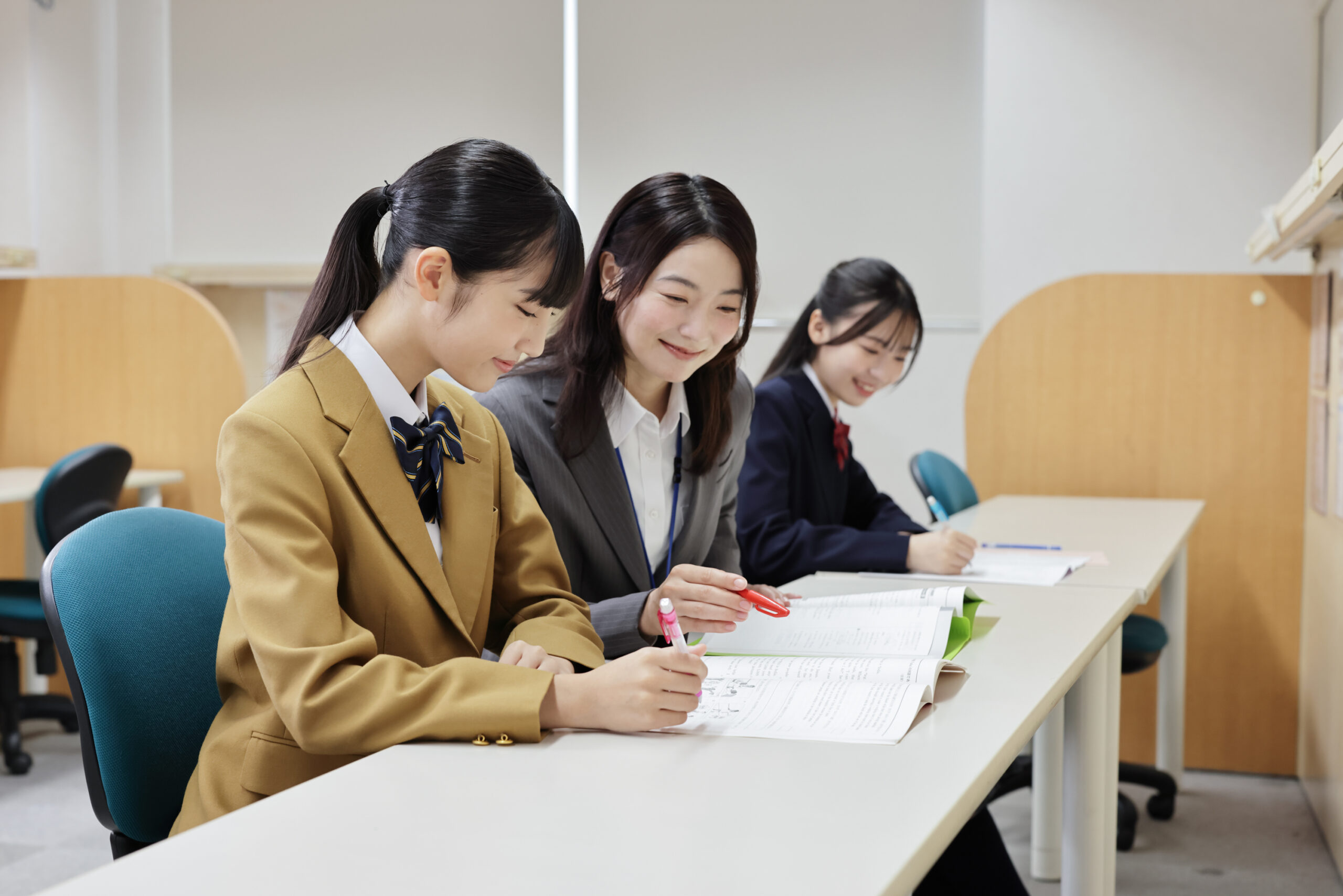 相性のよい最適な先生がすぐ横にいてくれる個別指導だから、学校ではなかなか質問できない問題も、質問しやすい! その場で「わからない」を解決できます。