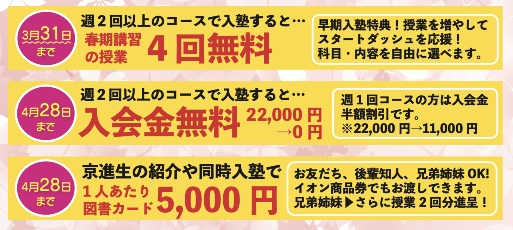 友人・兄弟姉妹 ご一緒にご入会、または京進生のご紹介でご入会の場合、