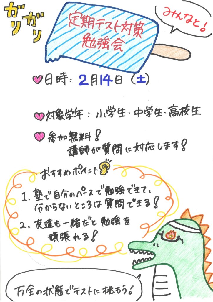 2/14(土)「ガリガリ勉強会」 2/15(日)「テスト対策スペシャル」