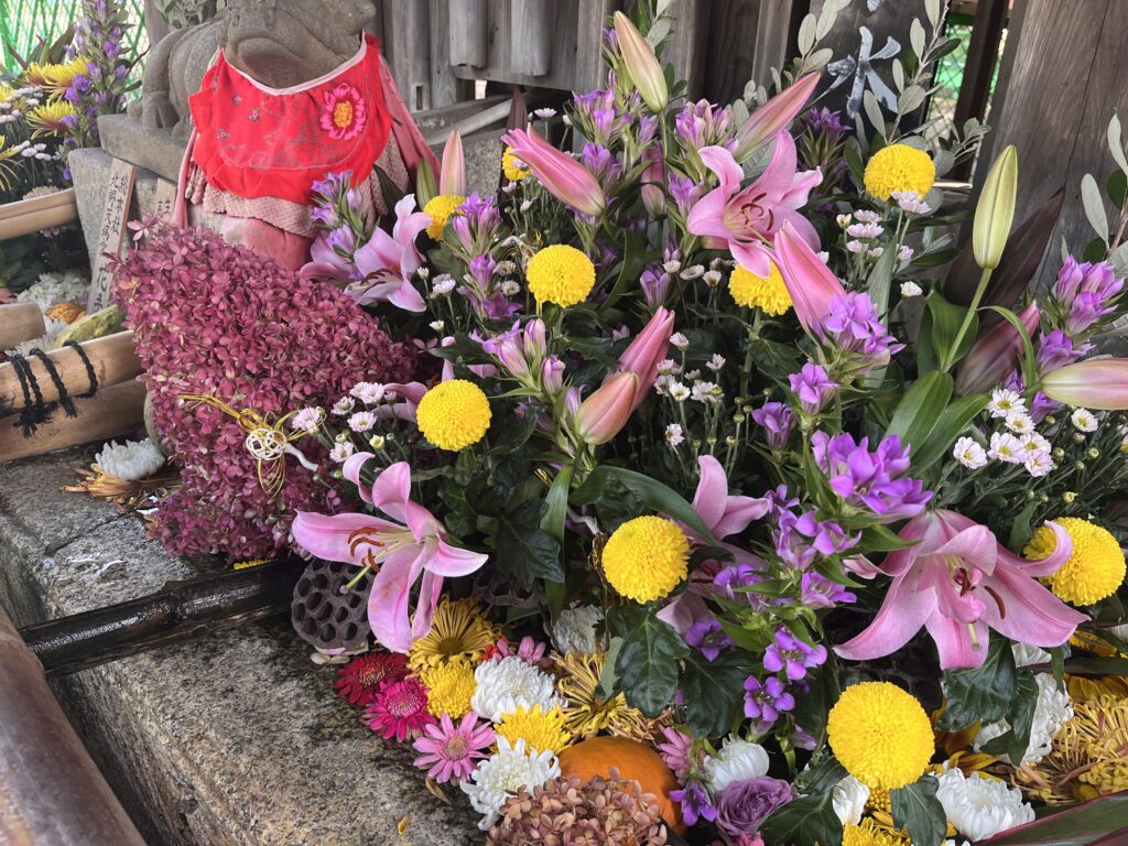 きれいなお花が生けられた、手水舎で清めてから…。