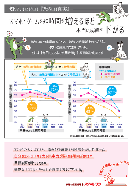 実はスマホの使用時間はテストの点数や成績に大きく影響しています!