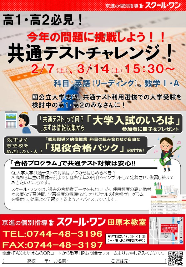 【2/7・3/14㊏】高1・高2必見!共通テスト対策は今から!