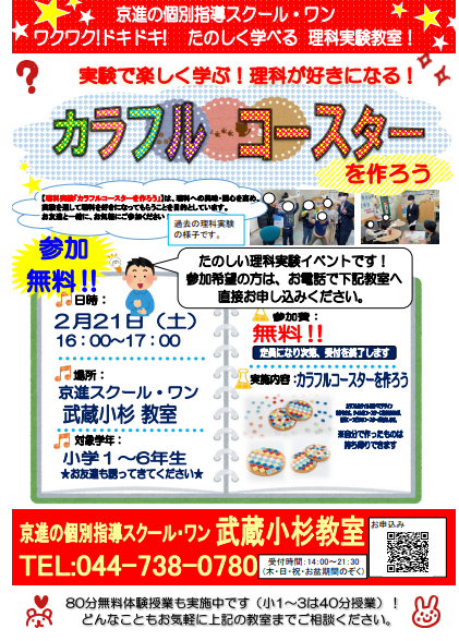 小学生対象の理科実験のご案内です😊