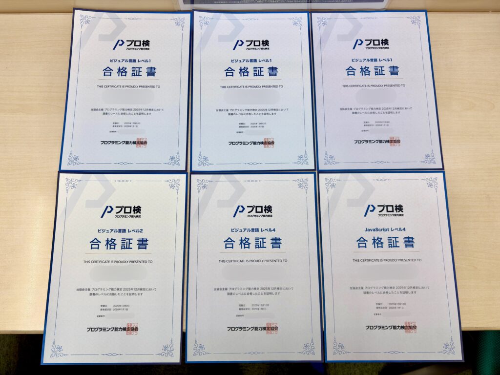 プログラミング能力検定 6名合格!うち2名が満点♪