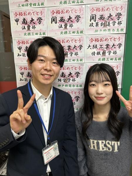 京進の個別指導スクール・ワンに通い始めた高2の頃は、英語は文法も長文も苦手で、英検取得にも自信が持てませんでした。しかし、先生方が基礎から丁寧に指導してくださったおかげで、英検2級に合格できました。その結果、苦手意識がなくなり、模試でも高得点を取れるようになりました。受験に向けて面接練習も手厚くサポートしていただき、具体的なアドバイスに基づいた対策ができたおかげで、合格することができました。先生や友だちとの出会いにも恵まれ、スクール・ワンで楽しく過ごすことができました。スクール・ワンで学んだことを活かして、これからも前向きに進んでいきたいと思います。
