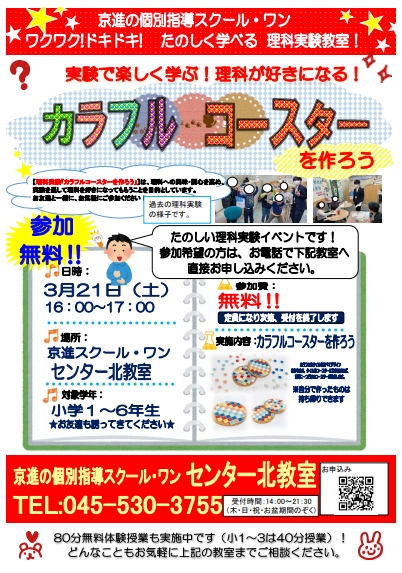 【小学生対象】3/21(土)理科実験開催のお知らせ