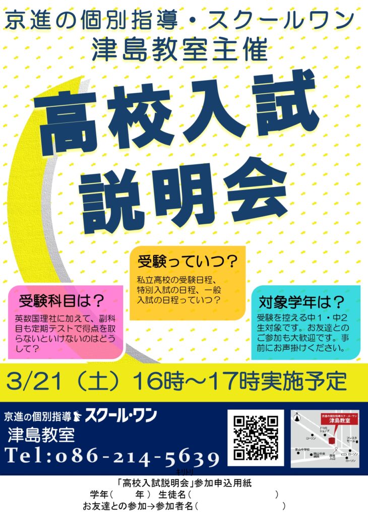 - 場所:京進の個別指導スクールワン津島教室