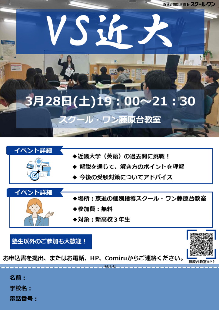 【無料イベント】新高3生 “VS近大” 開催!