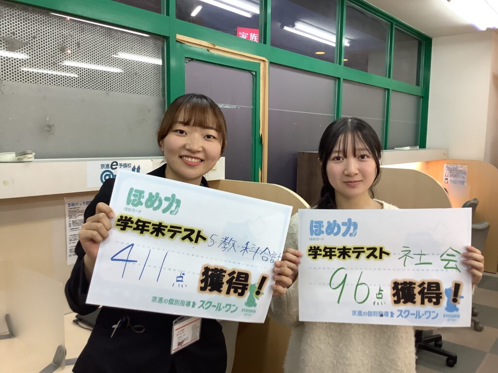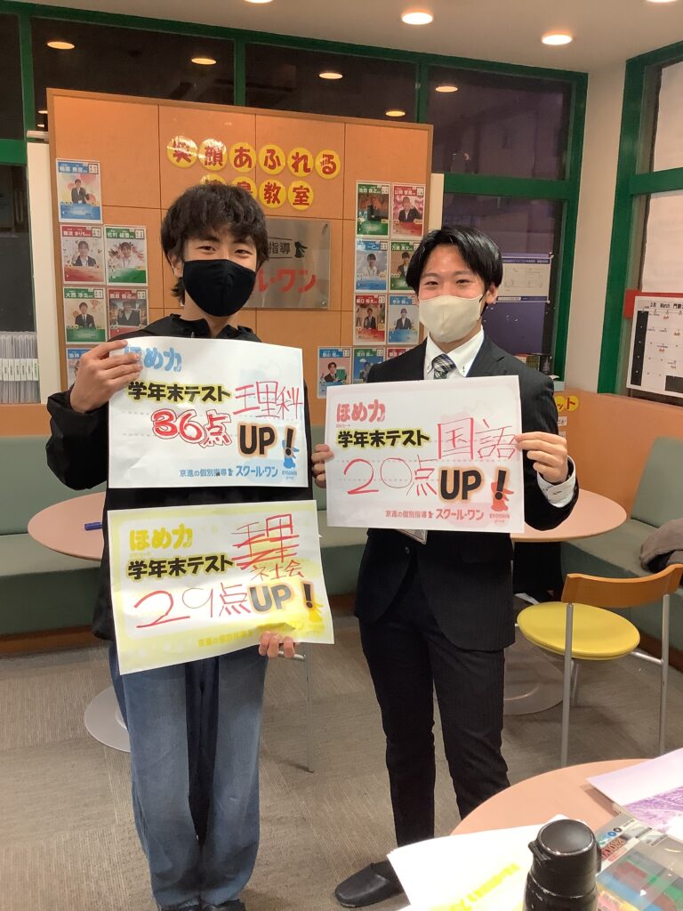 こんにちは!京進の個別指導スクールワン津島教室です。少し暖かくなって春の兆しを感じますね。4月からは、いよいよ新学年のスタートです。スクールワンでは、昨年度もたくさんの成績UPが実現しました。なかなかモチベーションが上がらず、伸び悩むこともたくさんありますが、一人ひとりに寄り添いながら、成績UPにこだわってきました!新学年準備でお困りの方は、ぜひ一度教室までお悩み相談ください!