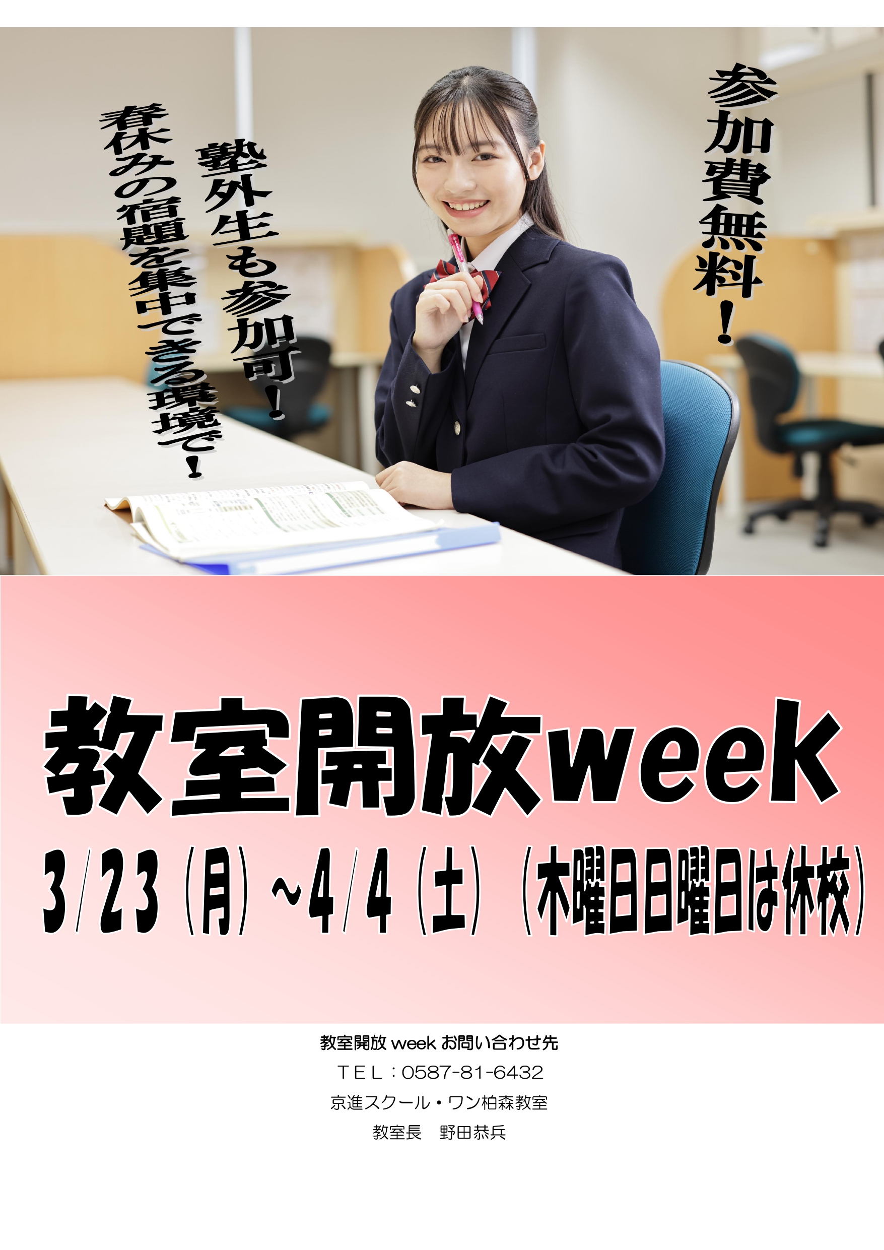 上記の期間中は塾に通っていない人も柏森教室に来て課題を進めることができます。