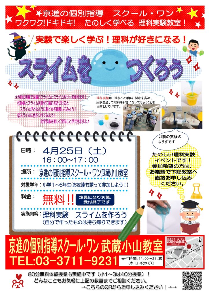 【小学生対象】4/25(土) ☆理科実験イベント開催!