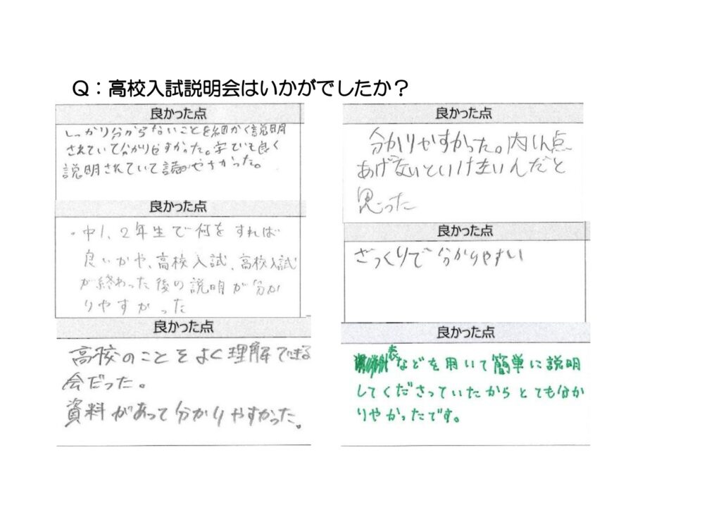 高校入試説明会にご参加いただきありがとうございました!高校入試に向けて、内申点や当日の出題傾向、そして、この4月から何を大事に勉強に取り組んでいけばいいかをメインにお話させていただきました。イベントのご様子や参加いただいたお子様の感想を少しご紹介させていただきます。今後も入試説明会や入試対策の勉強イベントを定期的に開催してまいりますのでぜひご参加ください!