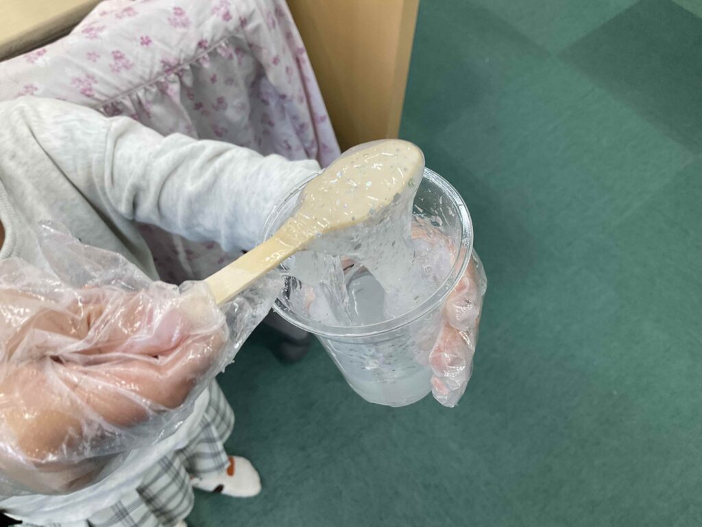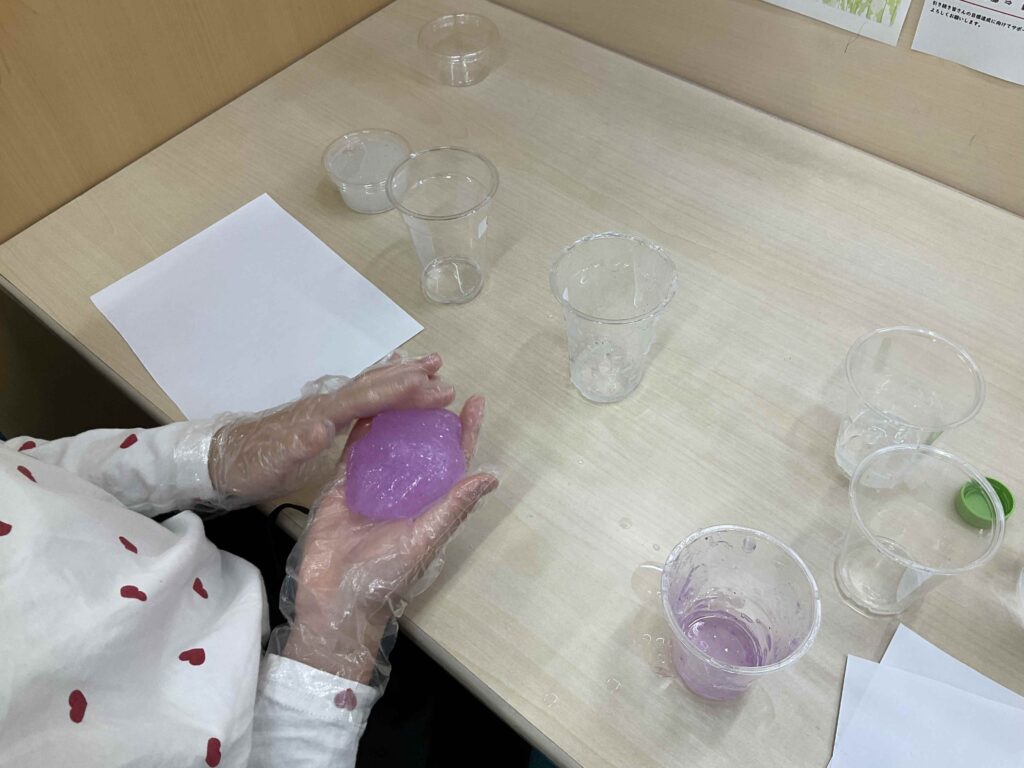 今回参加したみなさんはなんとスライムづくり経験があるとのこと!幼稚園でつくったとき以来…と懐かしむ様子も見られました。