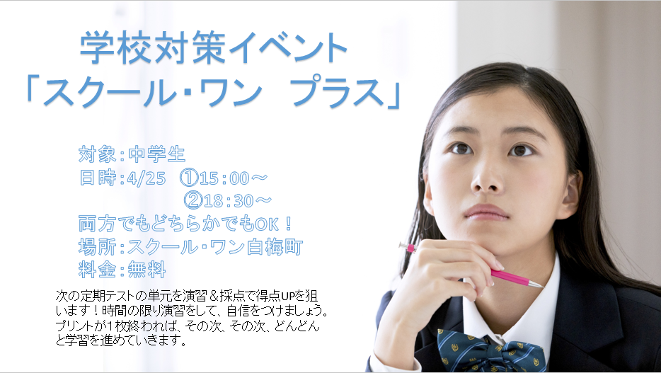 スクール・ワンのテスト対策用イベント「スクール・ワン プラス」です。