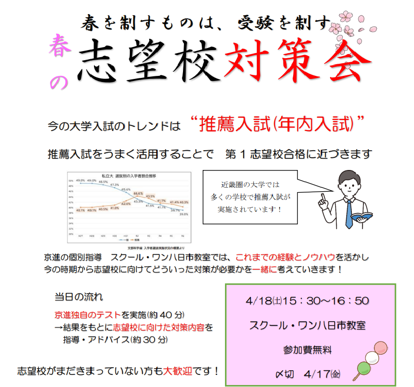 【聖徳中・八日市高生 注目!】4月受験対策イベントのお知らせ