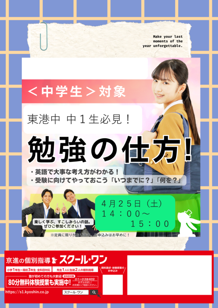 🏫4/25(土)中1生向けイベントを行います