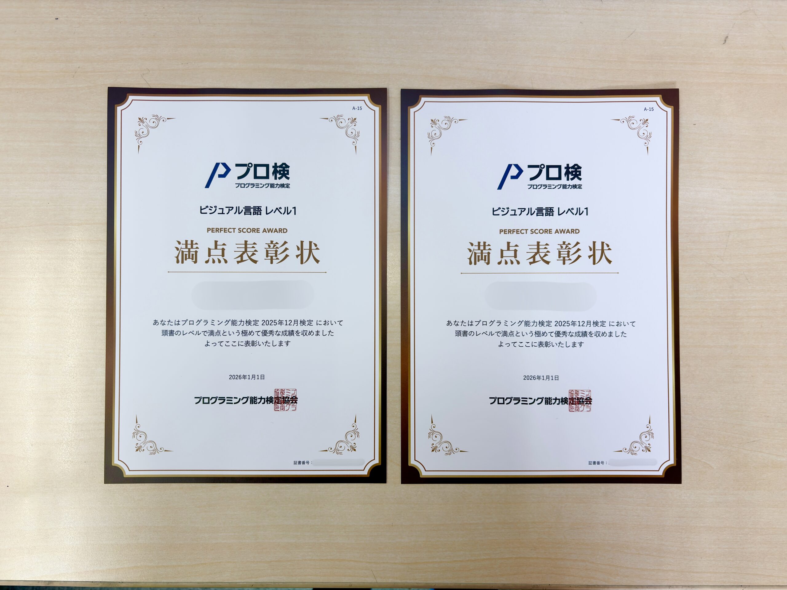 合格者は教室内に賞状を掲示♪(上画像は高校入試、下画像は大学入試の賞状です)