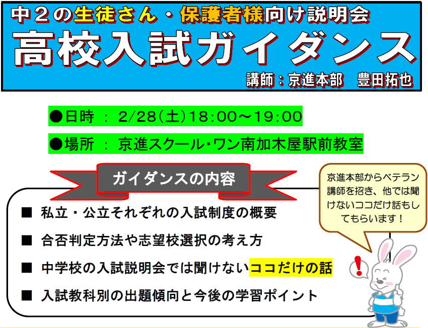 中2生対象「高校入試ガイダンス(無料)」参加者募集 |高校入試|加木屋中|横須賀中|大府南中
