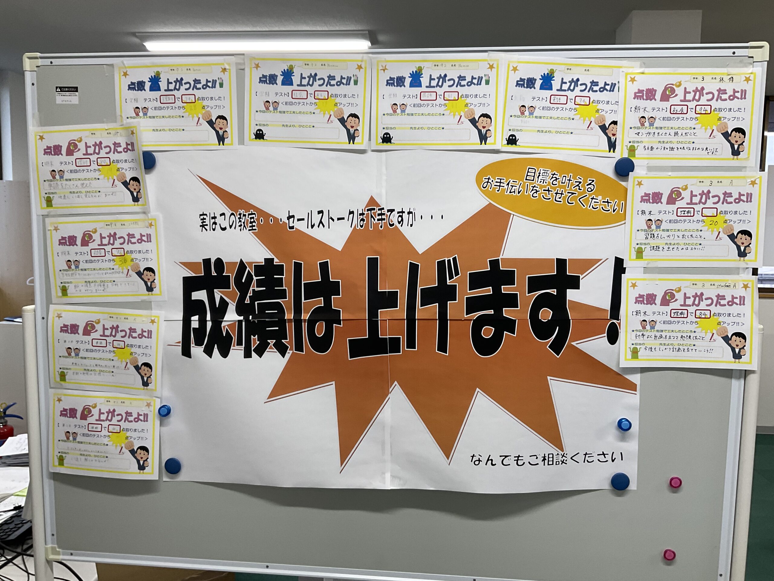 成績表、復習フォロープリントなどもお渡しいたします。