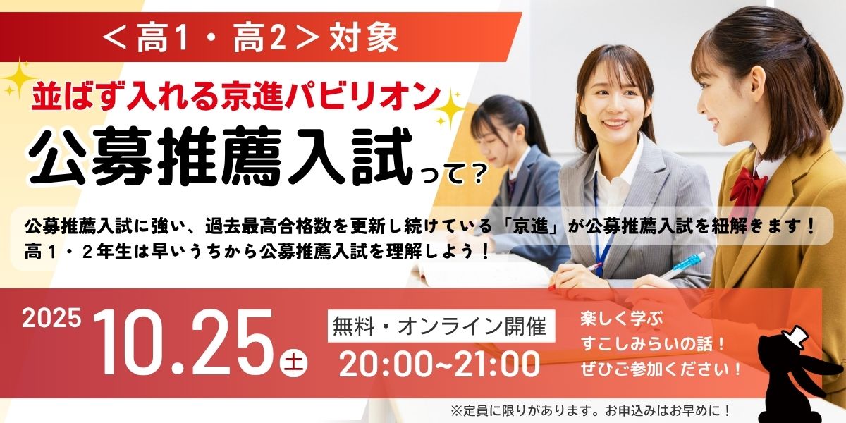 高1.2年生必見!公募推薦入試に強い、過去最高合格数を更新し続けている京進が公募推薦入試を紐解きます!