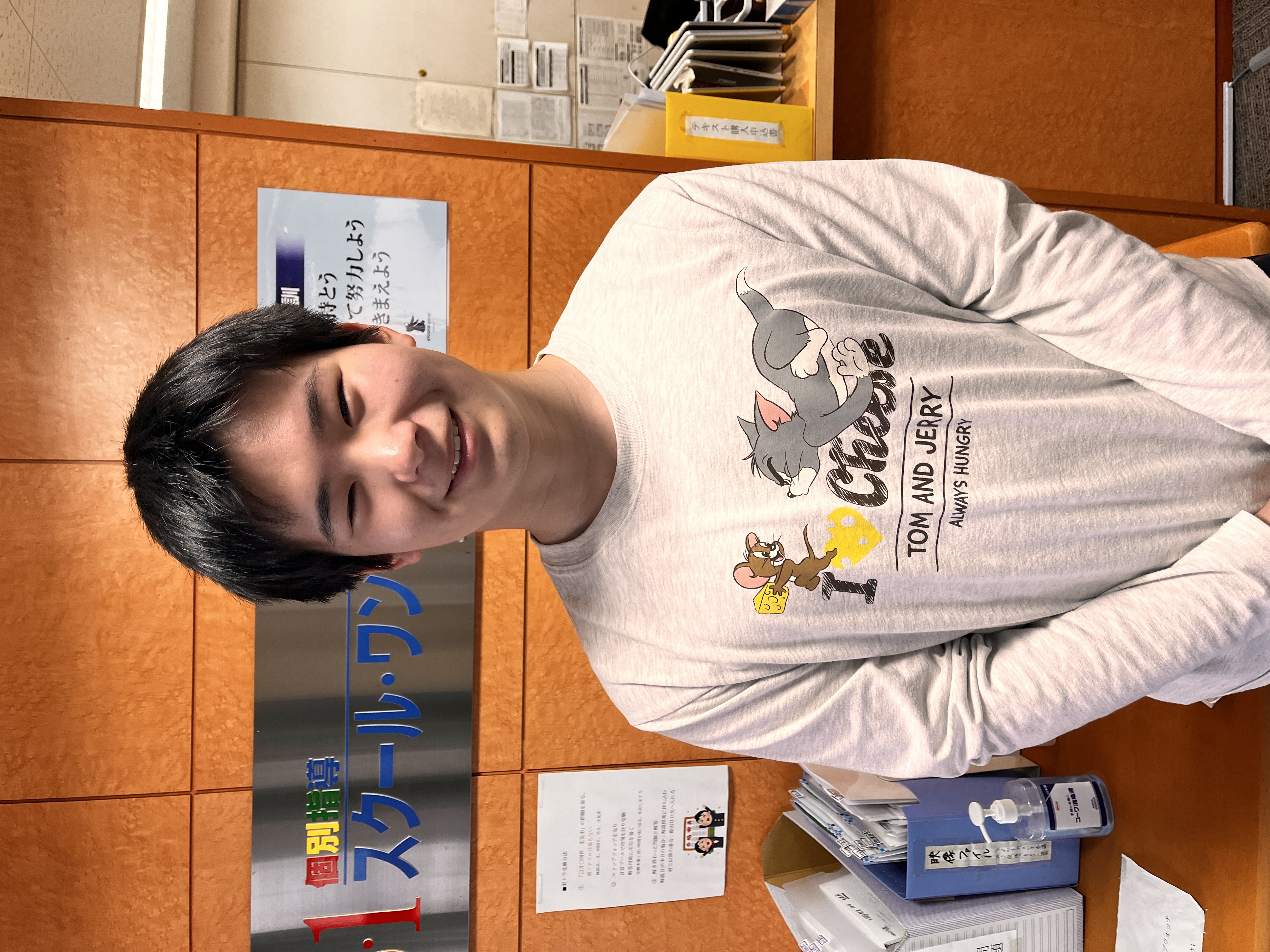 スクール・ワンには、中2の頃から通い始めました。当初は定期テスト対策や基礎学力向上でしたが、先生方の指導を受ける中で、次第に大学受験を意識するようになりました。私は特別勉強が得意な生徒ではありませんでしたが、参考書をひとつひとつ進め、英検対策も先生に積極的に相談しながら努力を重ねました。受験が近づくにつれ、先生方との対話は不安を和らげる大きな心の支えとなり、志望校合格につながりました。先生方、本当にありがとうございました。