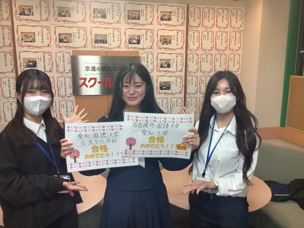 入会した当初は勉強のやり方がわからず不安を感じていました。しかし先生方が合格までの具体的な目標設定や勉強法をしめしてくださったことで、モチベーションを高く保つことができました。先生方の褒める指導は、私にとって大きな力となりました。できなかった問題ができるようになったとき、心から褒めてくださったことで、勉強する意欲が飛躍的に向上しました。何よりも、多くの先生方と出会うことができ、積極的に話しかけてくださったことで、通うのが楽しくなり、毎日でも来たいと思うようになりました。京進の個別指導スクール・ワンで勉強できて本当に良かったです。ありがとうございました。